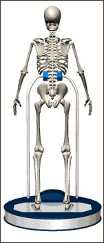 Die aufrechte Körperhaltung ist die Grundposition der menschlichen Fortbewegung. 70% der Körpermasse liegen mit hohem Schwerpunkt (projiziert auf BWK 10) hoch über einer kleinen Unterstützungsfläche. Balance, definiert als Fähigkeit, den Schwerpunkt dynamisch über der Unterstützungsfläche zu halten, ist eine ständige Regulationsaufgabe des neuromuskulären Systems. Um den Körperschwerpunkt in der richtigen Lage zur Unterstützungsfläche zu halten, muss das neuromuskulärer System kleinste Verlagerungen wahrnehmen, antizipieren und entsprechende Gegenbewegungen durchführen. Schon die Atembewegungen des Brustkorbes, geschweige denn das Ausstrecken eines Armes erfordern eine Gegenregulation des ganzen Körpers, damit wir nicht umfallen. Die Krafteinleitungen des Galileo sind ein hochfrequenter, wirkungsvoller Trainingsreiz der Haltungskontrolle. Hier muss auf der Vibrationsplatte Fußposition und Körperhaltung variiert werden, bis hin zum Einbeinstand mit Maximalverlagerung des Rumpfes und anderen Beines.